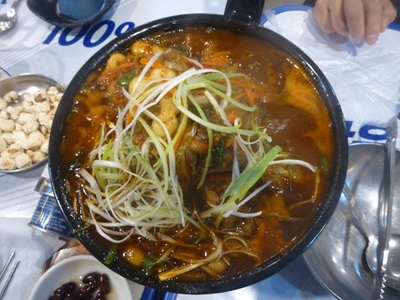 この辺りには、サラリーマンの飲み屋があるので、「長安門」「世林」(麺)などでぜひビールと焼酎を飲みながら、疲れを癒してください。値段も手ごろです。樋口謙一郎先生に教えていただきました。「世林」ですが、電話番号で検索してください。02-319-4603です。ここの麺類、雑炊は美味しい。「長安門」(中区茶洞138)ですが、豚の骨に肉が付いたものとオイスターを注文しました。ハナ銀行の大きな通りを渡り、細い道を直進すれば両側に食堂・レストランが並んでいます。値段も安く、どの店も美味しそうです。