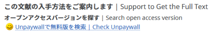 本学で論文の電子版を購読していなくても、無料で公開されていることがあります。その場合は以下のとおり「オープンアクセスバージョンを探す」というメッセージ(リンク)が表示されます。