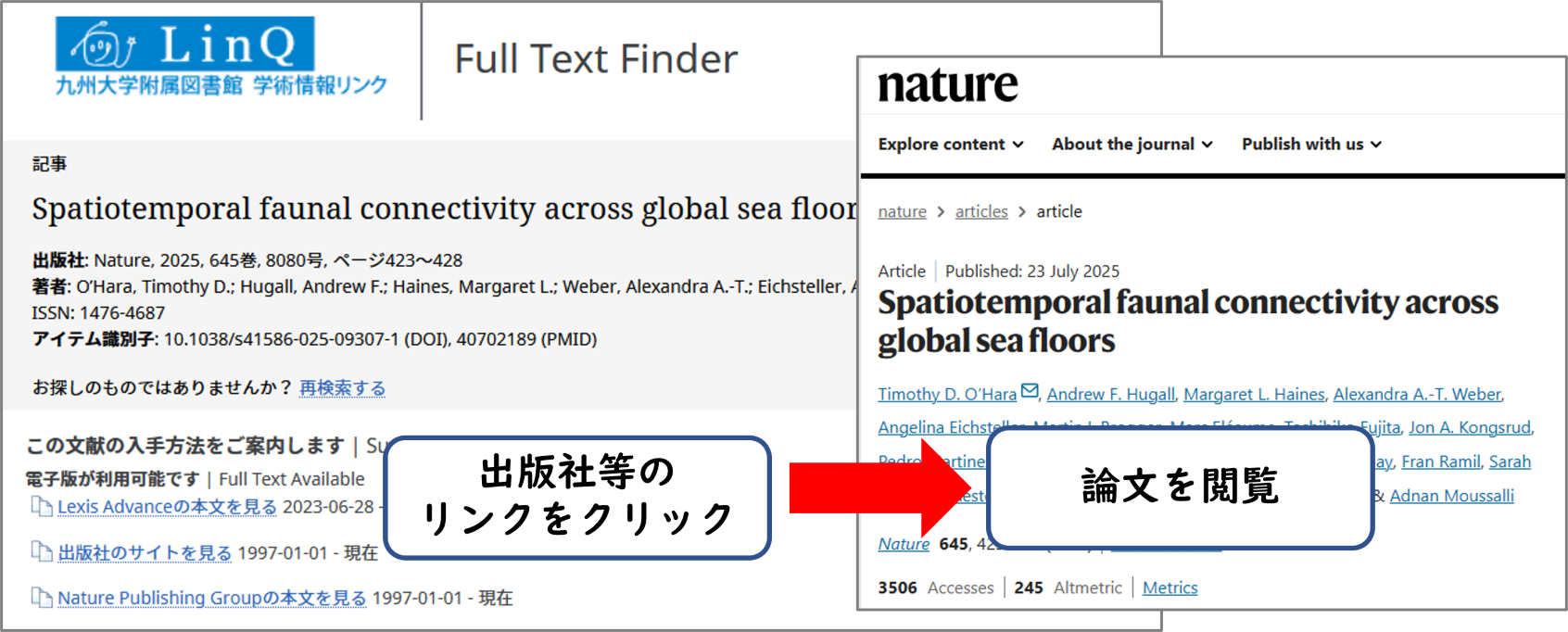きゅうとLinQのナビゲーション画面が開き、論文のオンラインフルテキストへ案内します。