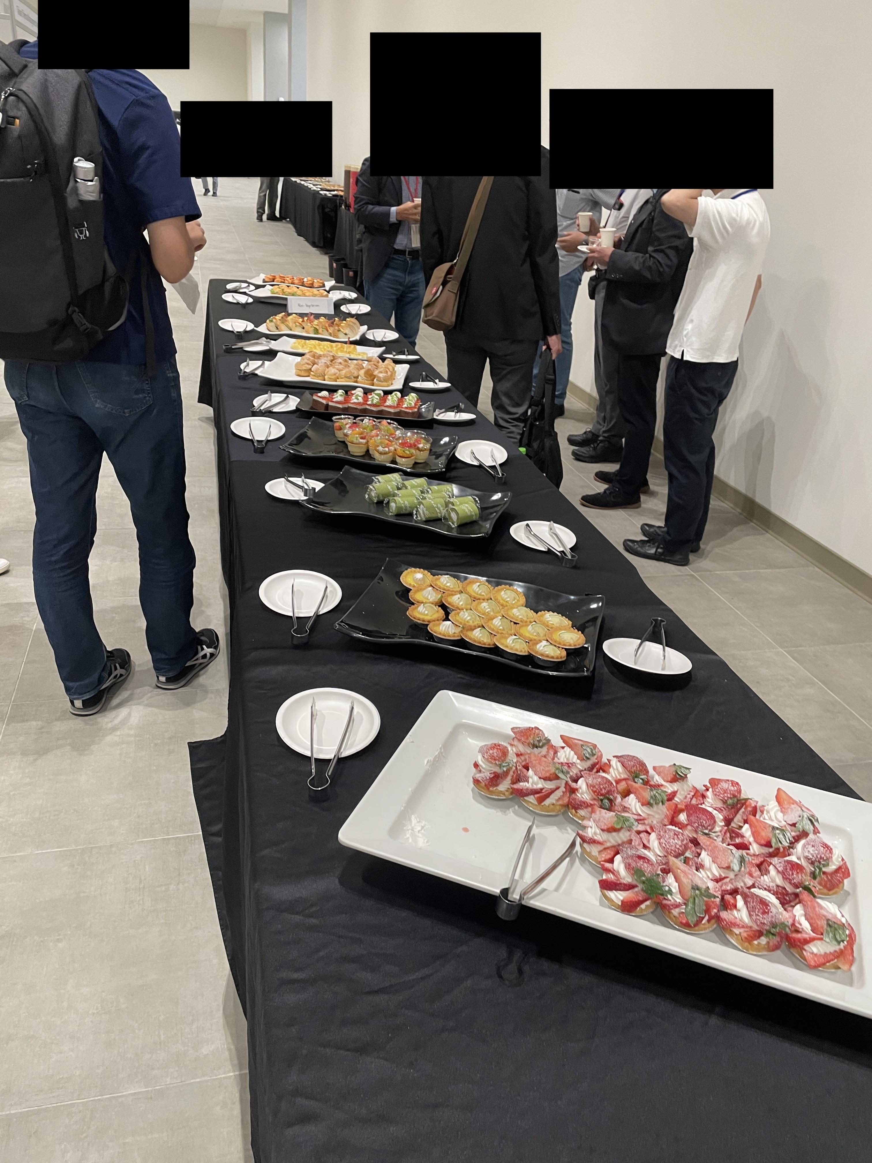 昼食はビュッフェ形式で、さまざまな料理が並び、参加者同士で自由に歓談できる場となっていました。残念ながら写真を撮り忘れてしまいましたが、下図のおやつのような形でずらりと料理が並んでました。