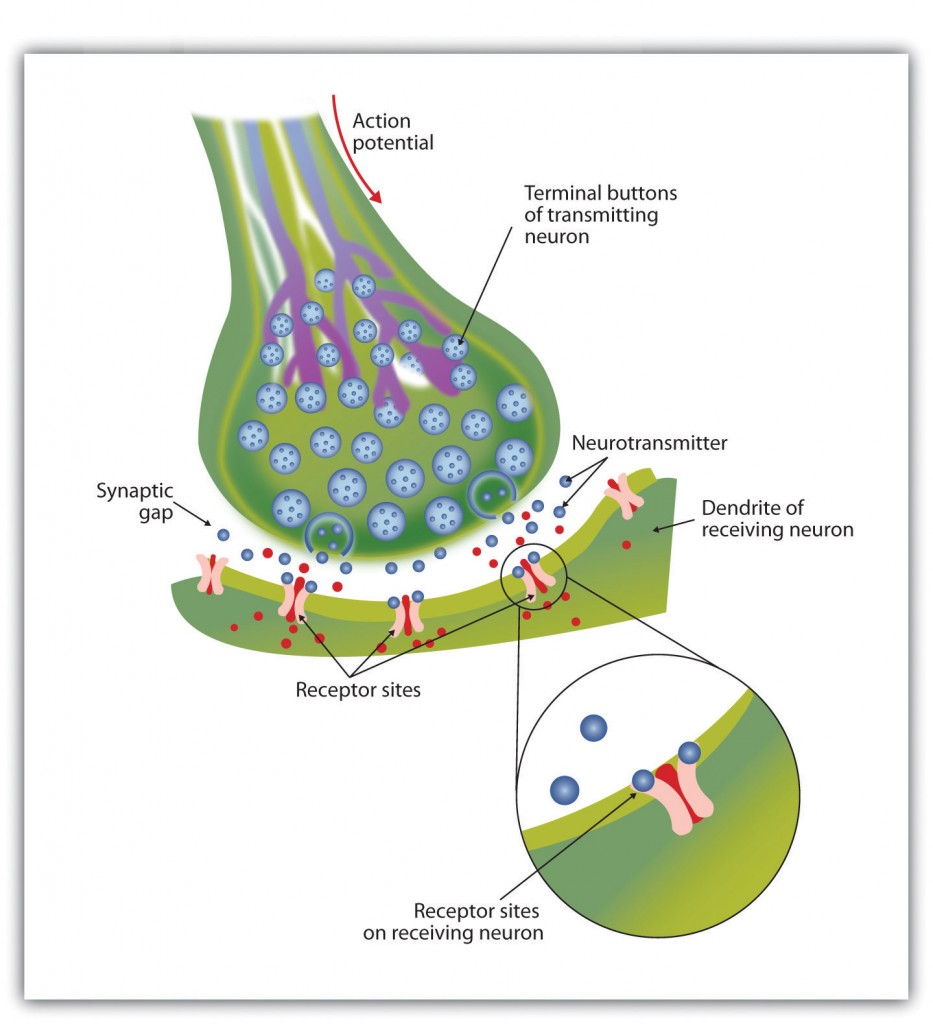 Stangor, C., & Walinga, J. (2018). The Synapse.The neuron is the building block of the nervous system. In Introduction to psychology: 1st Canadian edition. B.C. Open Textbook Project.